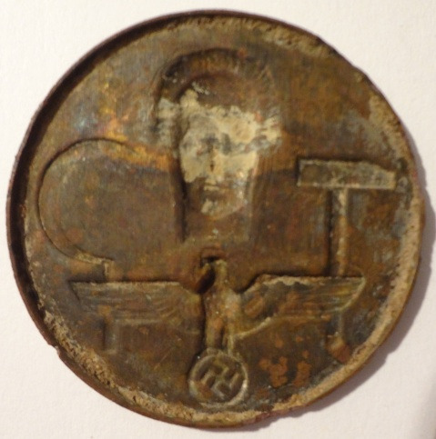 Measures about 35 mm across. Includes group portrait of workers, mostly women; Issued to labour workers in germany; 1935 5th hessentag in kassel der nsdap 1934 tag der arbeit tinnie $ 20.00.