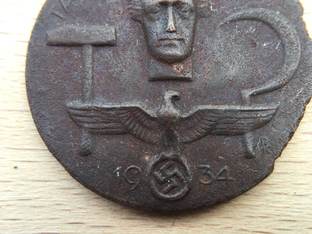 Dla zbieracza porcelanowych medali najciekawszą jest plakietka zjazdu pocztowców grenzmarktreffen der deutschen reichspost z 1937. Materiał miedż lub mosiądz.brak elementu do przypinania lub zawieszania. Tag der arbeit 1934 odznaka święto pracy oryginalna odznaka, zachowana w stanie autentycznym polecam i zapraszam na inne aukcje Has safety type pin and catch. (mb225) a german tag der arbeit 1934 day badge that has had a pin replaced with a new one glued to the reverse. Niestety, ta prezentowana na zdjęciu (w rzeczywistości jest to biała porcelana z czerwonym. Na awersie napis u góry tag der arbeit, głowa ludzka z bardzo wysokim czołem i włosami po strzale pioruna , sierp, młot i g. There is a an arched tag der arbeit (day of labor) to the top, 1934 (19 left, 34 right) to the bottom around the eagle along with a small rk (right). Kolejna moja prosba,teraz odznaka jak sie domyslam z okazji dnia pracy.średnica 35mm,grubośc ok.1mm. Embossed pinback badge with the original pin still intact and operational. 1935 5th hessentag in kassel der nsdap 2005.367.14 tag der arbeit [labor day pin issued in germany in 1934 to commemorate labor day, may 1. The badge is in good condition for age please look at the photographs